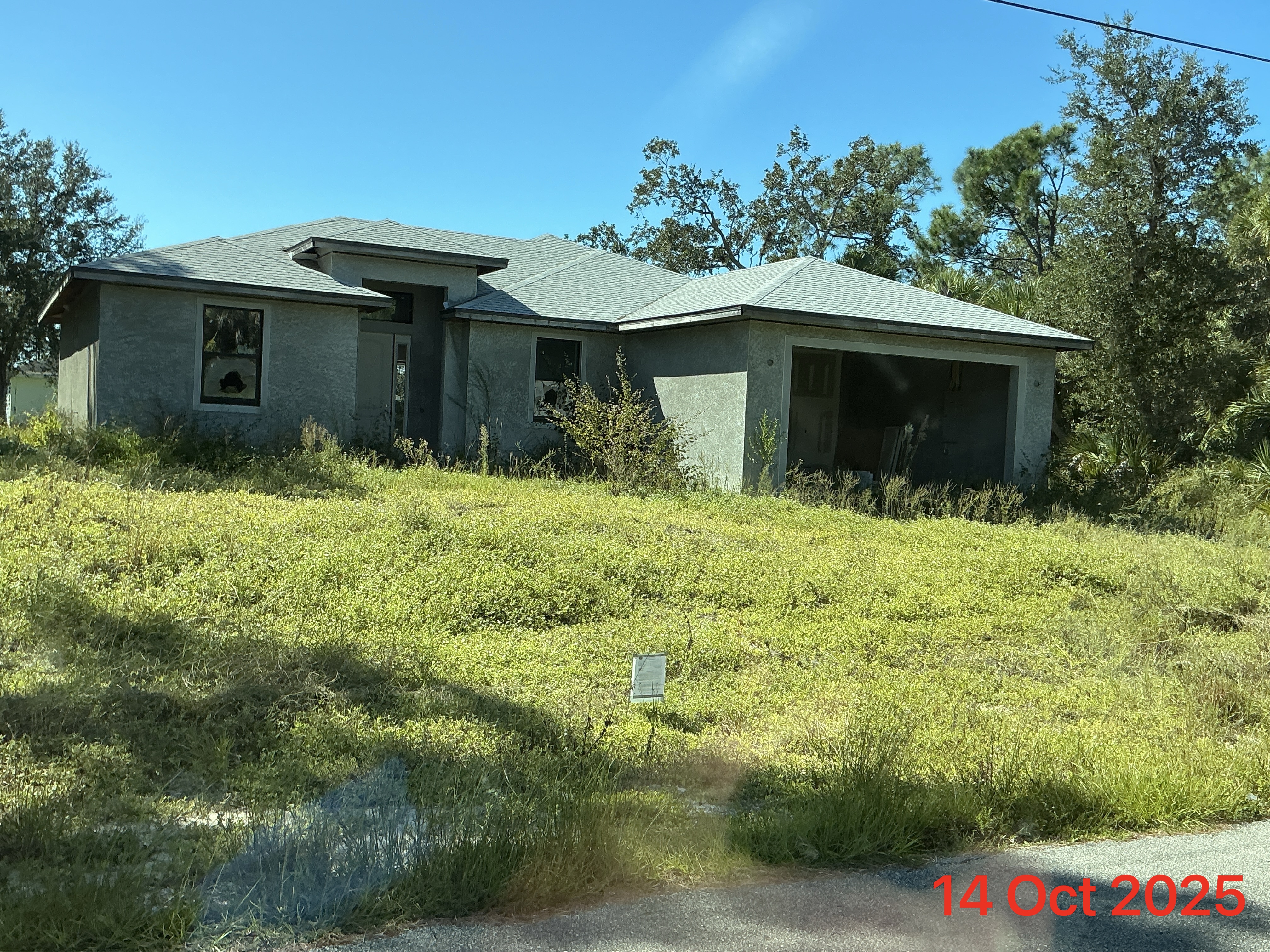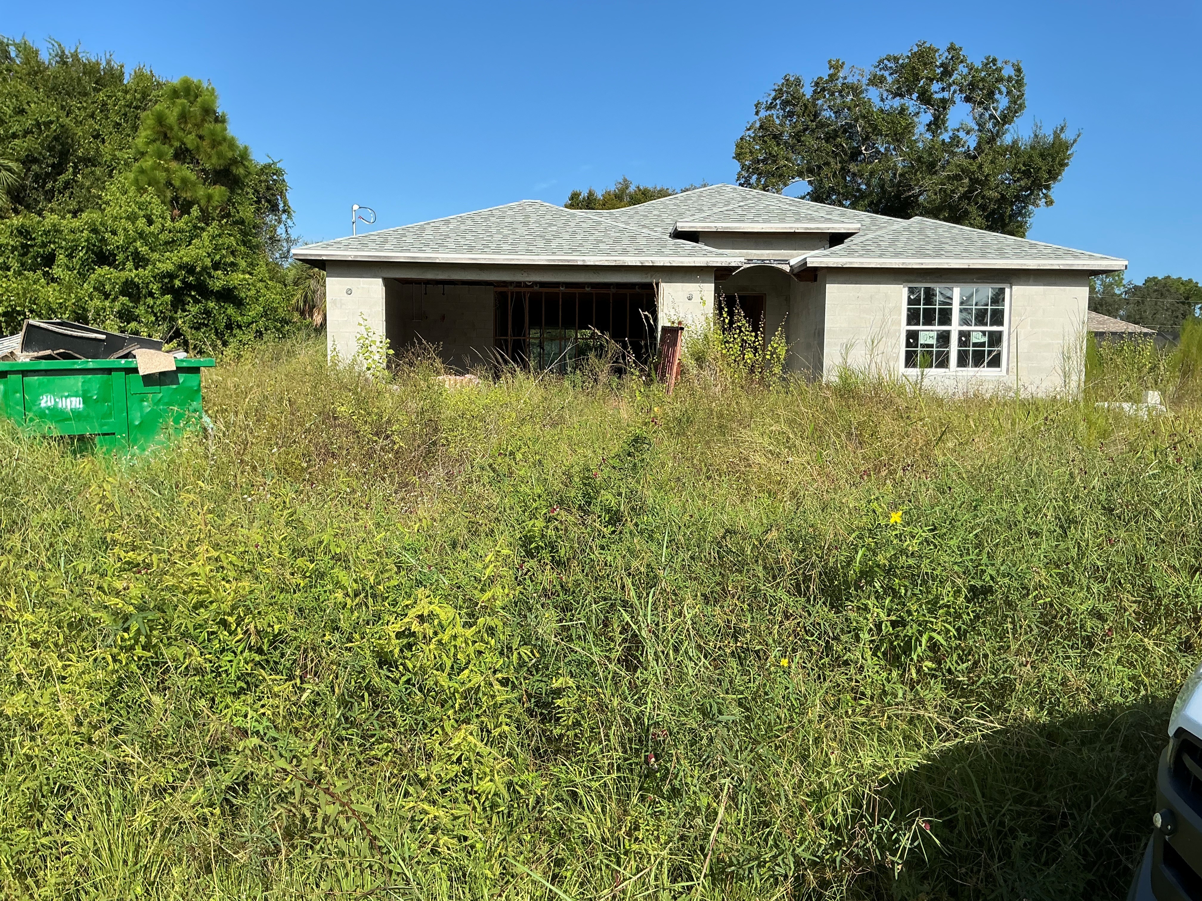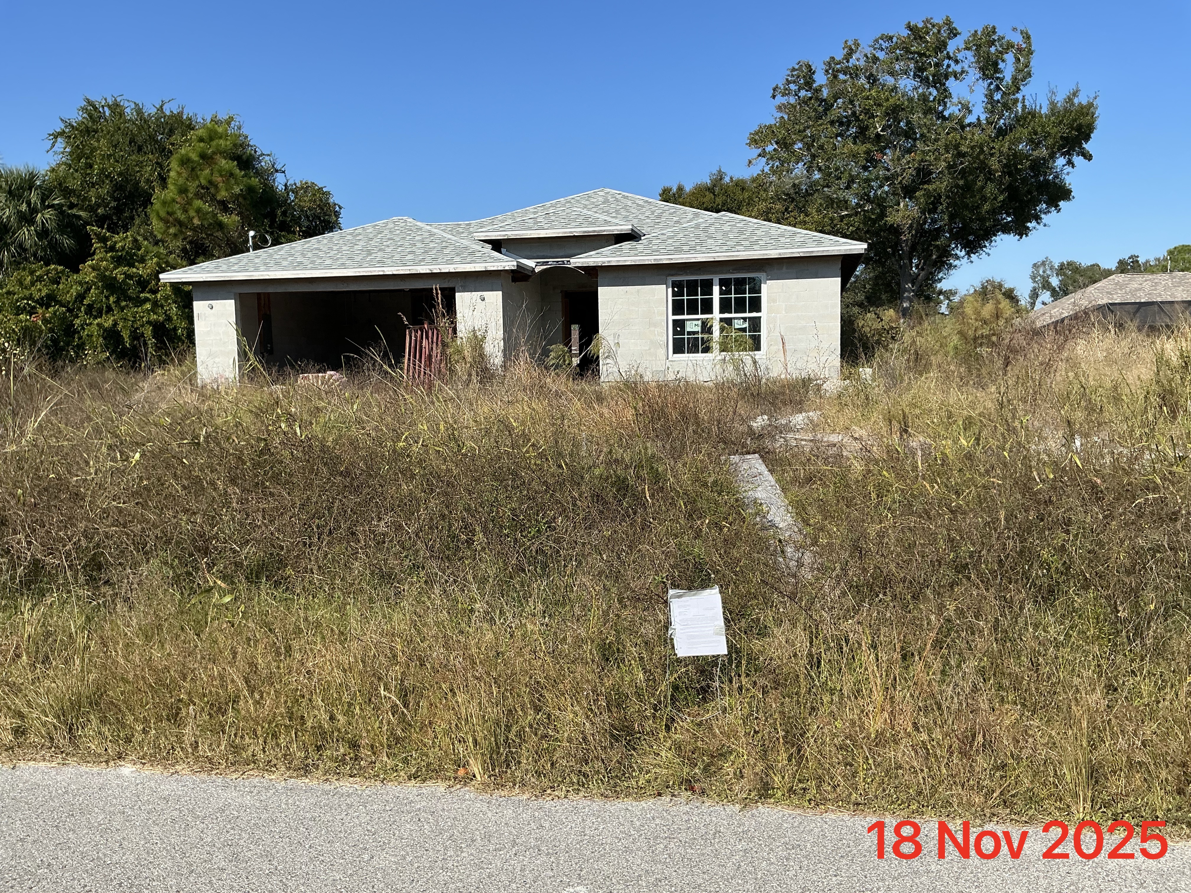 (No roof on house.)