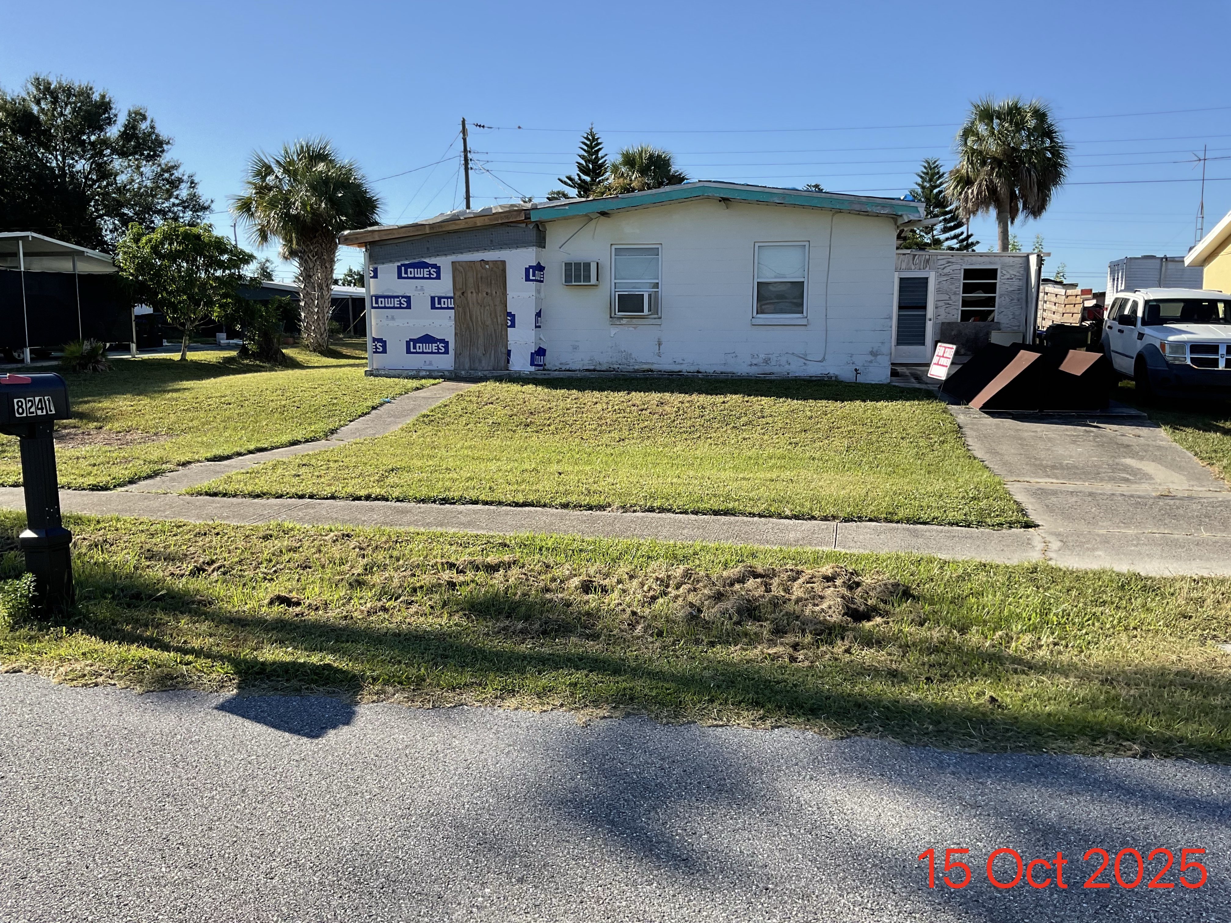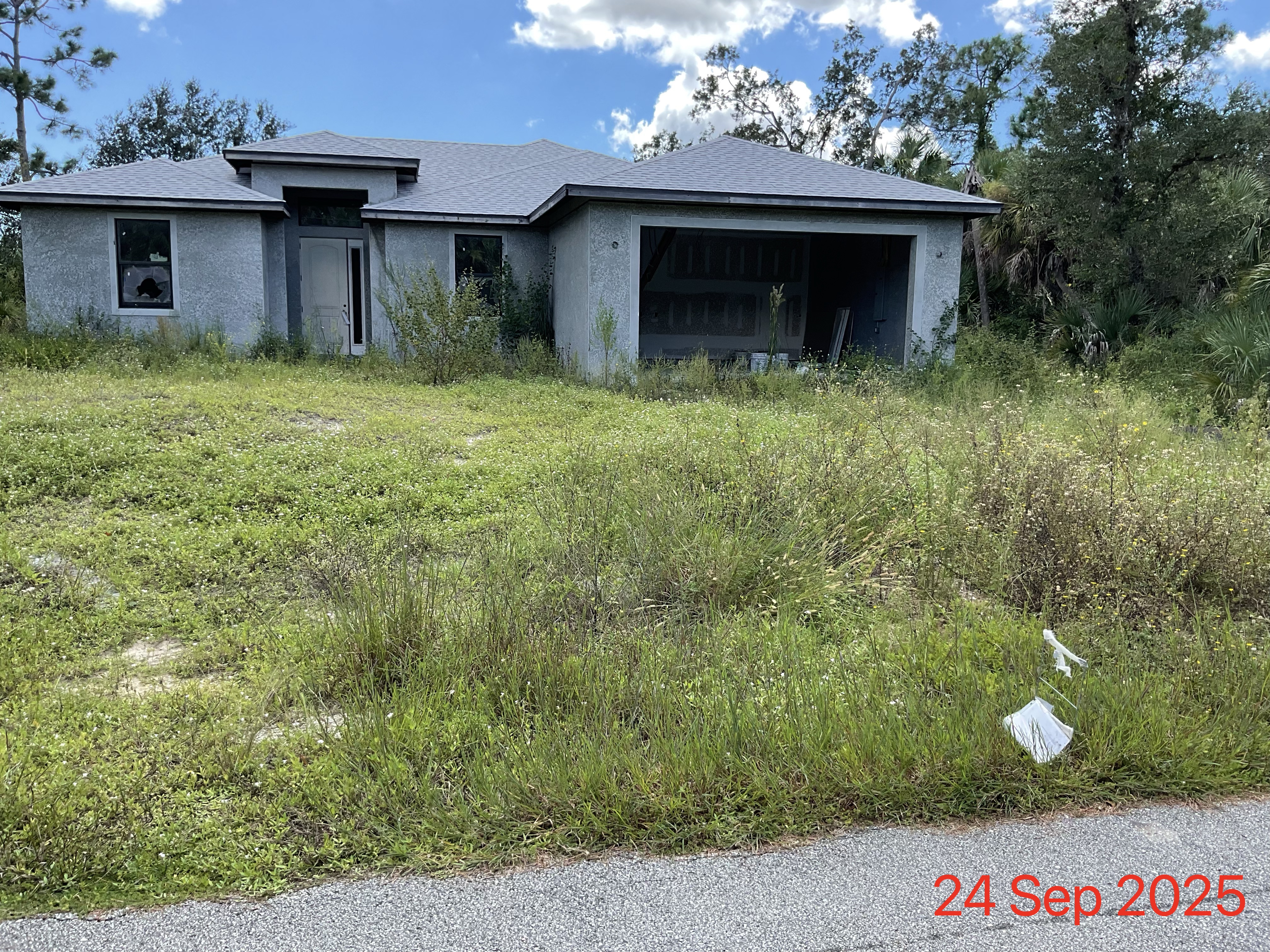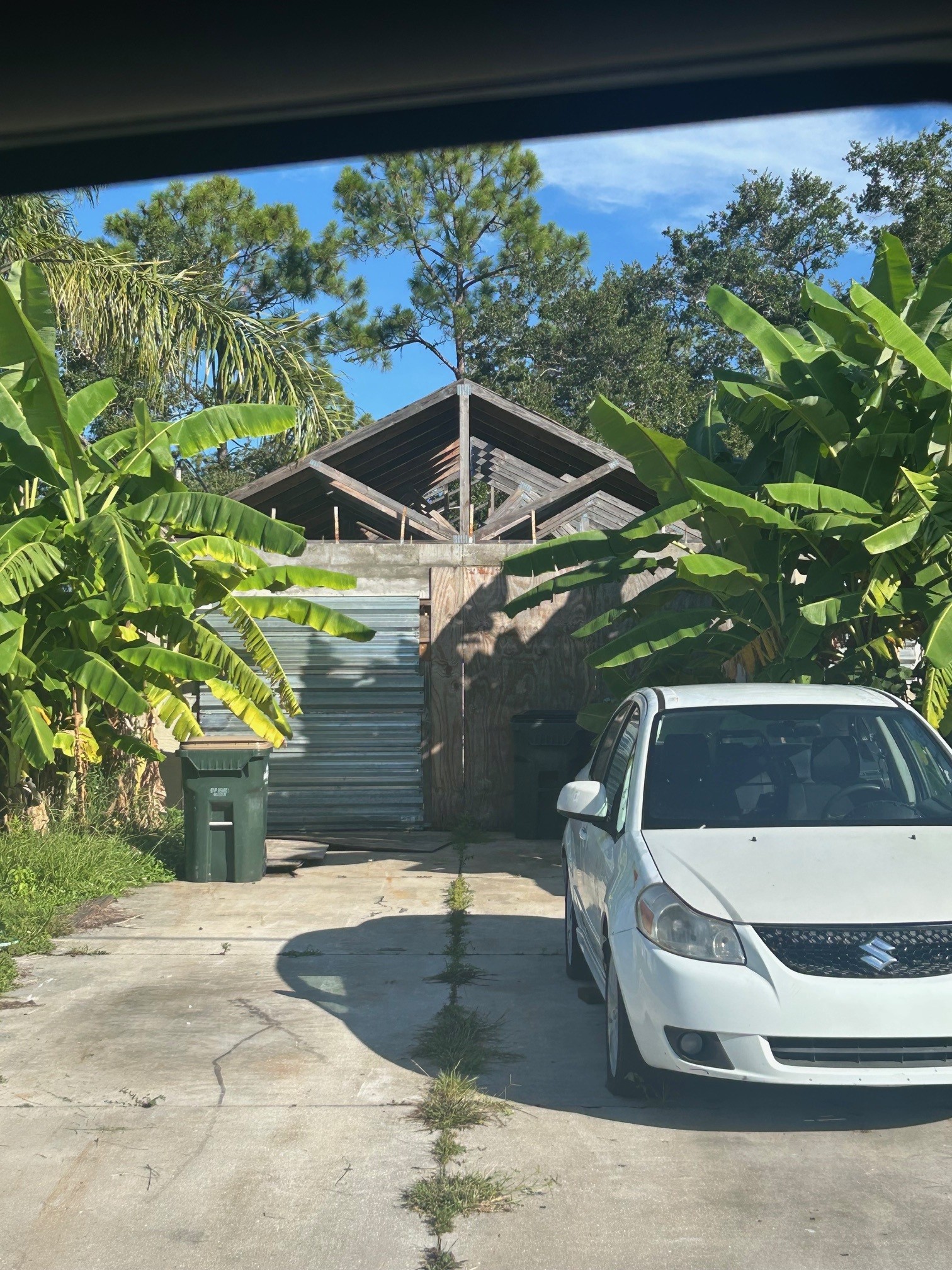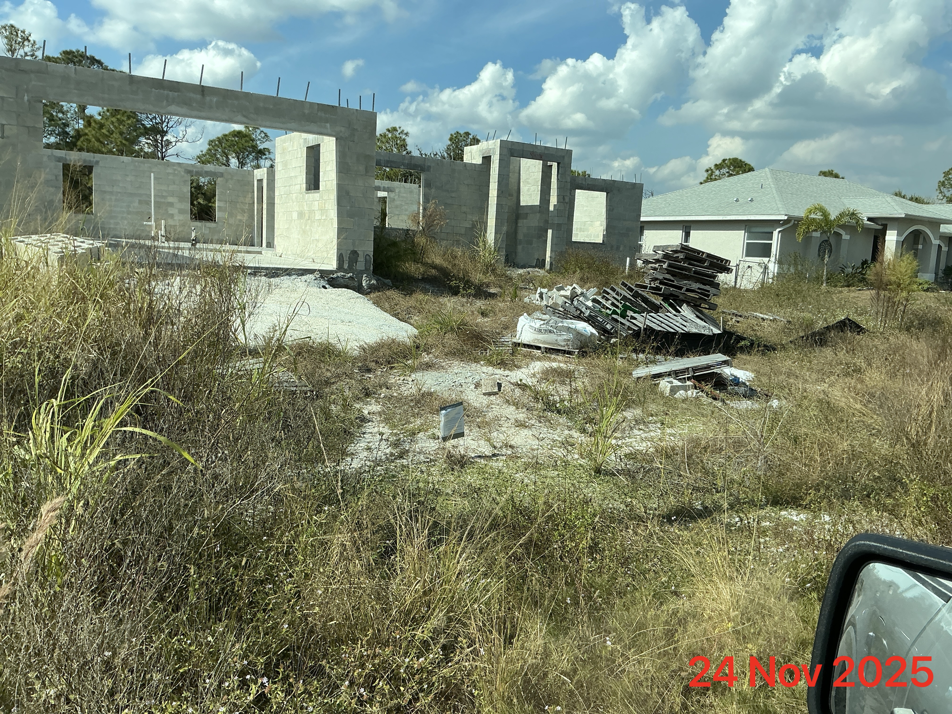 (No roof on house.)