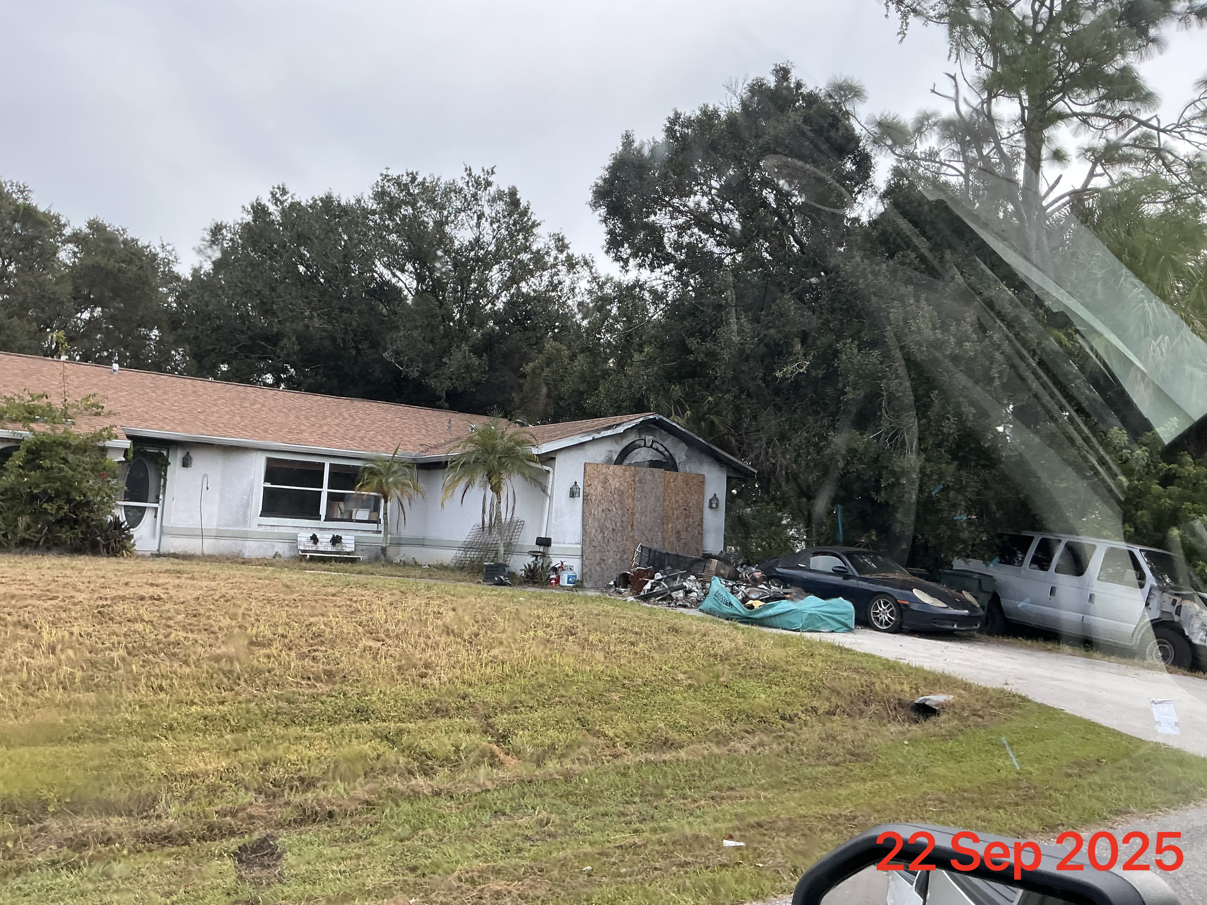 (Accumulation of debris throughout property.)